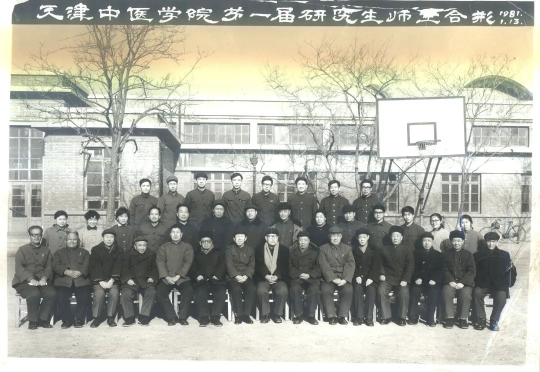 天津中医学院第一届研究生师生合影,后排右一为张伯礼。