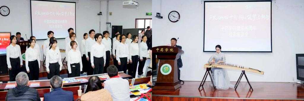 会议结束后,与会的老领导、退休教师、校友移步中药学院,参加了以《薪火相传四十载 同心筑梦启新程》为主题的校友座谈会。座谈会由中药学院原副院长何永志教授主持。会上,中药学院学生合唱团献上了合唱《世界赠予我的》,古筝独奏《茉莉芬芳》等精彩节目。老校友、老教师们欢聚一堂,畅叙情谊,追忆往昔峥嵘岁月,并为学院未来的发展积极建言献策。