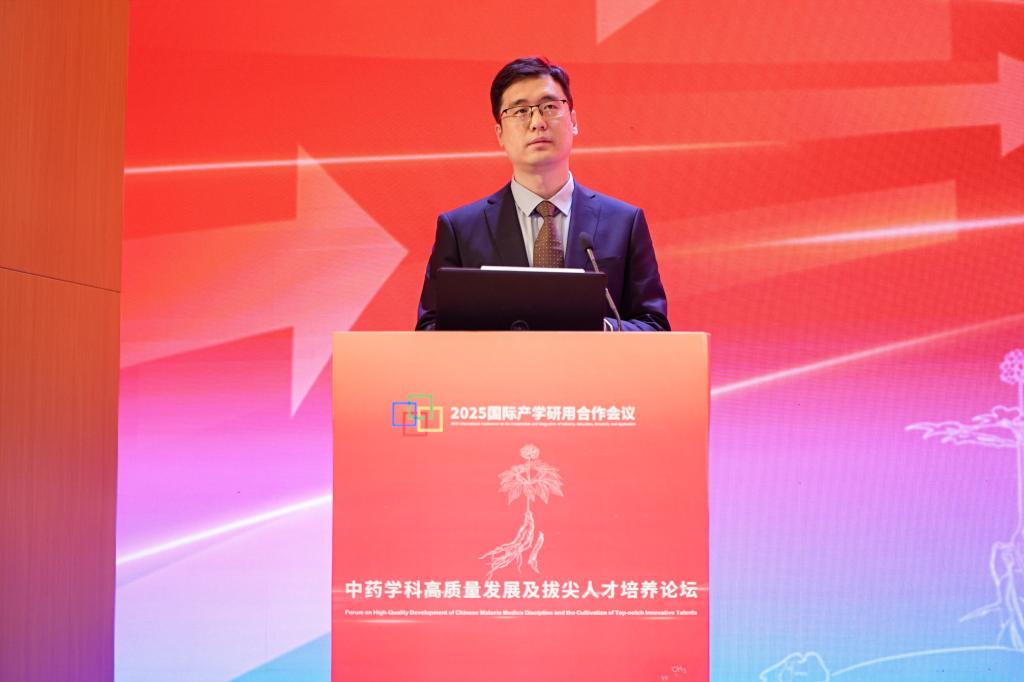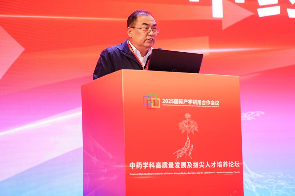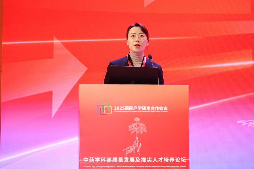 天津中医药大学校长高秀梅教授向大会致辞。她指出,一直以来,中药学院始终面向国家重大战略需求和人民健康需要,在中药资源保护与利用、中药质量标准化、中药新药研发等领域取得了一系列突破性成果。她表示,当前学院正处在中医药发展天时、地利、人和的大好时机,她对中药学院的未来发展提出三点希望:一是要坚持立德树人根本任务,构建高水平人才培养体系。二是要聚焦国家重大战略需求,提升科技创新能力。三是要深化国际交流合作,推动中医药走向世界。她希望中药学院以建院40周年为新的起点,继承优良传统,锐意改革创新,加快建设特色鲜明、国内一流、世界知名的高水平中药学院,为学校“双一流”建设作出新的更大贡献,为中医药事业传承创新发展书写更加绚丽的本草华章。