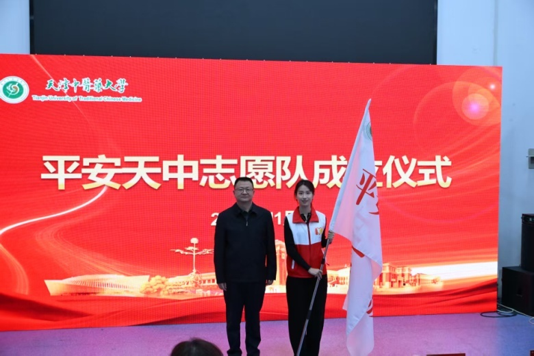 校党委副书记张华泉向平安天中志愿队授旗