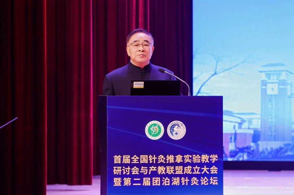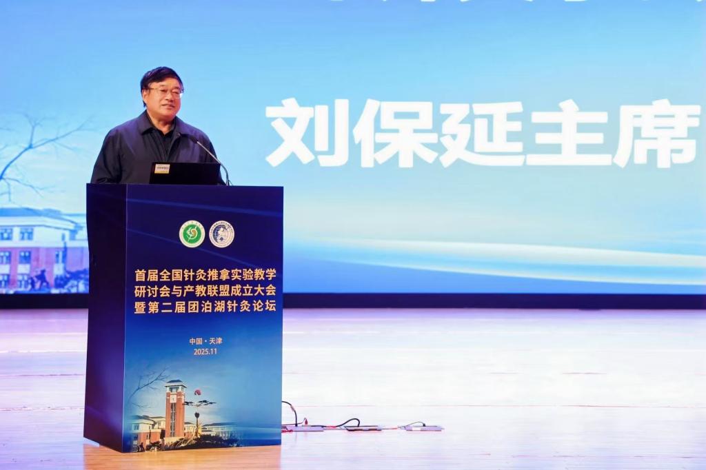 中国工程院院士、天津中医药大学名誉校长张伯礼在致辞中强调,针灸推拿学是中医药传承创新的重要载体,必须坚持“四个面向”,强化国家级平台赋能,构建“科研-教学-临床”一体化育人闭环;聚焦关键科学问题,梳理针灸领域亟待突破的瓶颈难点,推动基础研究与临床转化深度融合;深化产教协同,促进科研成果向诊疗技术、教学装备和健康产品高效转化,服务国家新质生产力发展和全民健康战略;依托国家中医针灸临床医学研究中心,以国家医学中心建设为契机,把天津打造成针灸的“联合国”,成立国际针灸研究中心。