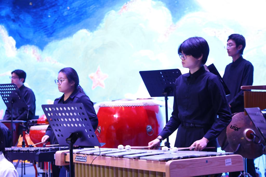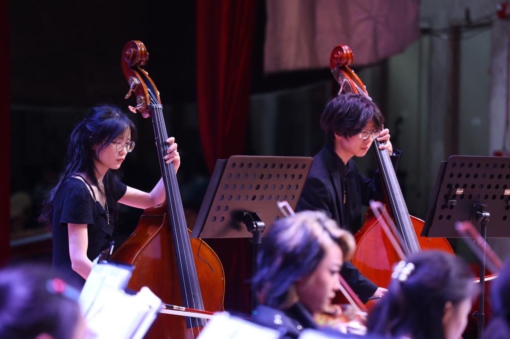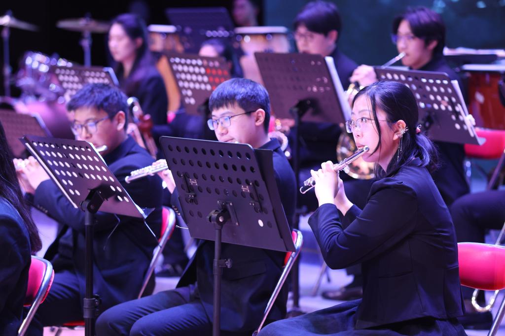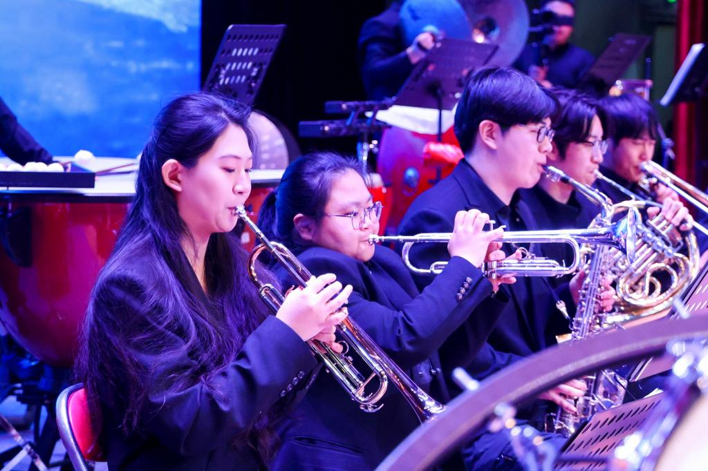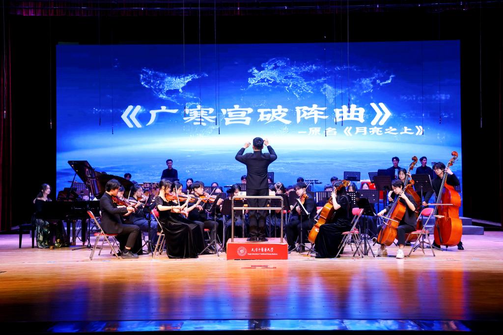 天津中医药大学大学生管弦乐团以一曲明快热烈的《法兰多拉》舞曲拉开演出序幕,灵动的旋律仿佛裹挟着法国普罗旺斯的节日欢腾之风,瞬间点燃全场氛围。紧接着,《培尔・金特》组曲缓缓流淌,引领观众步入神秘奇幻的北欧森林,沉浸式感受异域风情;《天堂电影院》的温情旋律轻柔响起,唤醒了观众心中尘封的银幕记忆与岁月情怀;《流浪地球》则以恢宏磅礴的音场,勾勒出中国科幻的宏伟史诗,尽显宇宙的浩瀚与人类的坚韧。上半场大轴曲目《月亮之上》采用交响化编配,致敬了中国航天人逐梦苍穹的浪漫征程,让经典流行旋律焕发出磅礴大气的艺术气象,也展现了传统与现代的完美融合。