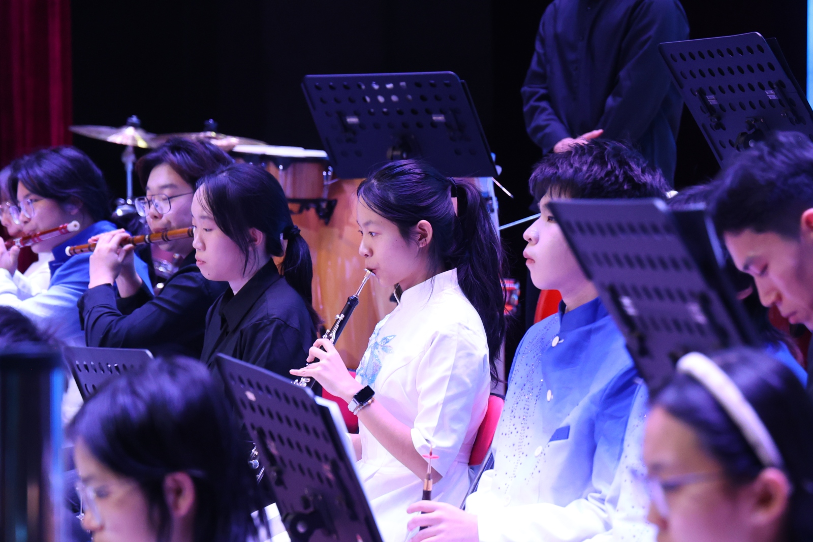 表彰仪式圆满落幕之后,“春华秋实 奔向 2026”新年音乐会温情启幕。本场音乐会由学校大学生艺术团管弦乐团、合唱团、民族管弦乐团联袂献演,在指挥张顶老师的倾情执棒下,为现场观众呈现了一场震撼心灵的视听盛宴。