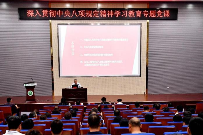 为深刻领会习近平总书记关于加强党的作风建设的重要论述和中央八项规定及其实施细则精神,提高认识,增强信心,推进作风建设常态化、长效化,6月24日下午,学校党委书记刘革生以《深刻认识开展深入贯彻中央八项规定精神学习教育的重要意义,推动新时代机关干部队伍高质量发展》为题,立足学校高质量发展,结合机关干部队伍实际,运用理论阐述与案例剖析相结合的方式,为机关广大党员干部讲了一堂生动精彩、深入浅出、内容丰富的专题党课。校党委副书记张华泉参加了党课学习。